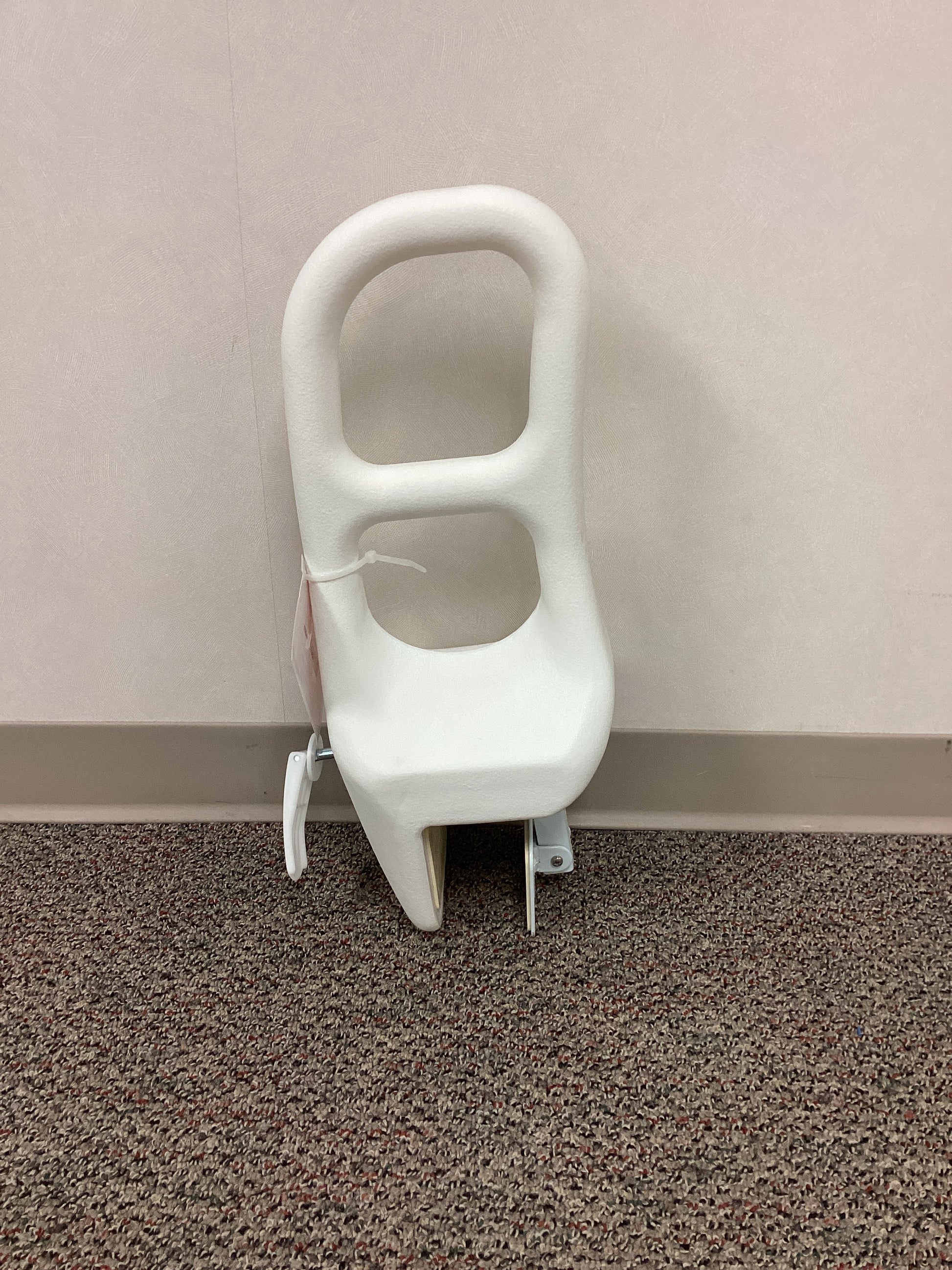 Drive brand white removable bathub grab rail that is 22" long and features 2 handle positions. The bath rails clamp attaches by turning the locking mechanism which tightens the secure grip pads on all bath tub contact points. The clamp is 3" apart at its tighest and 4.5" at its loosest. Weight capacity is 300 lbs.