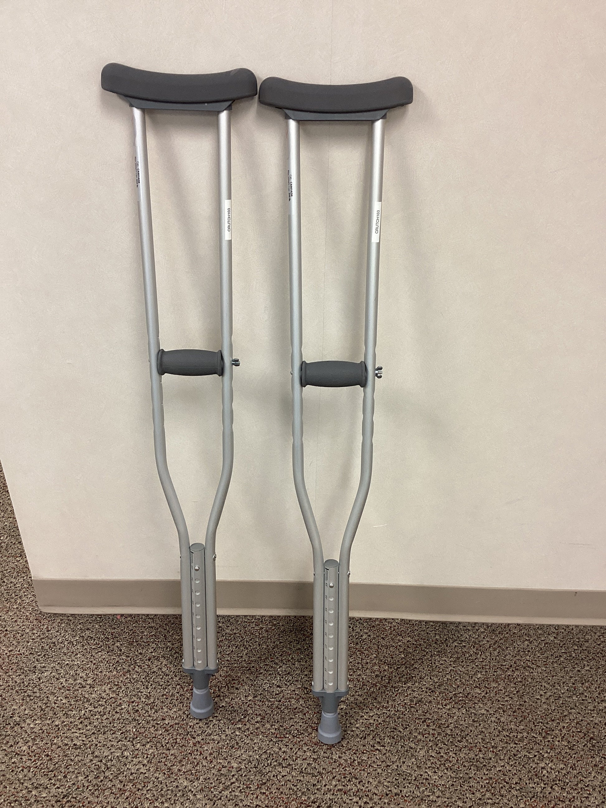 Cardinal brand aluminum crutches with slip-resistant feet and adjustable handles. These crutches are height adjustable from 5'2" to 5'10". These crutches also feature padded armpit cushions for increased comfort. Weight capacity is 300 lbs.