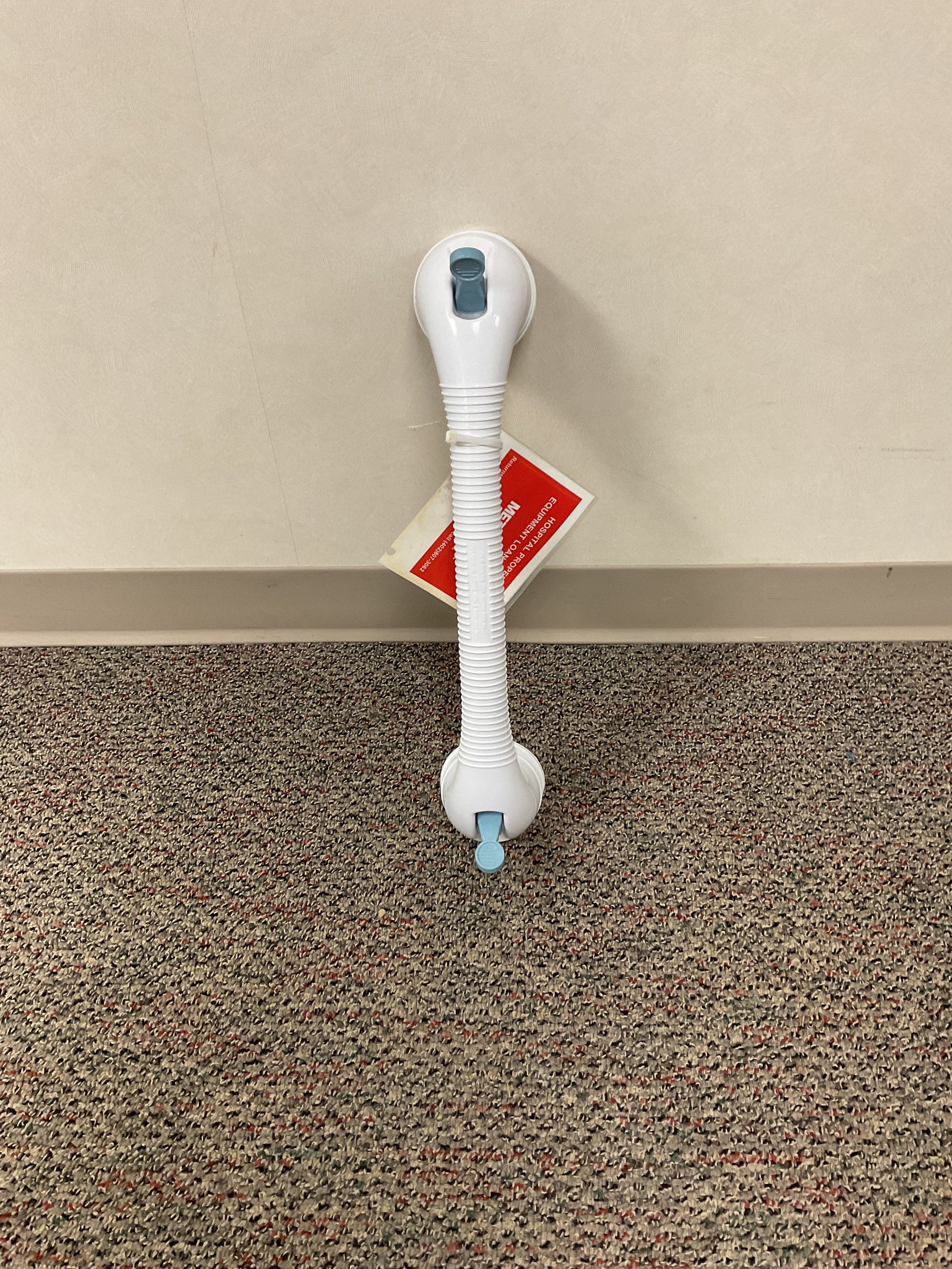While grab bar with suction grip (no brand listed). This grab bar is 19" long and the suction cups are 3.5" in diameter.