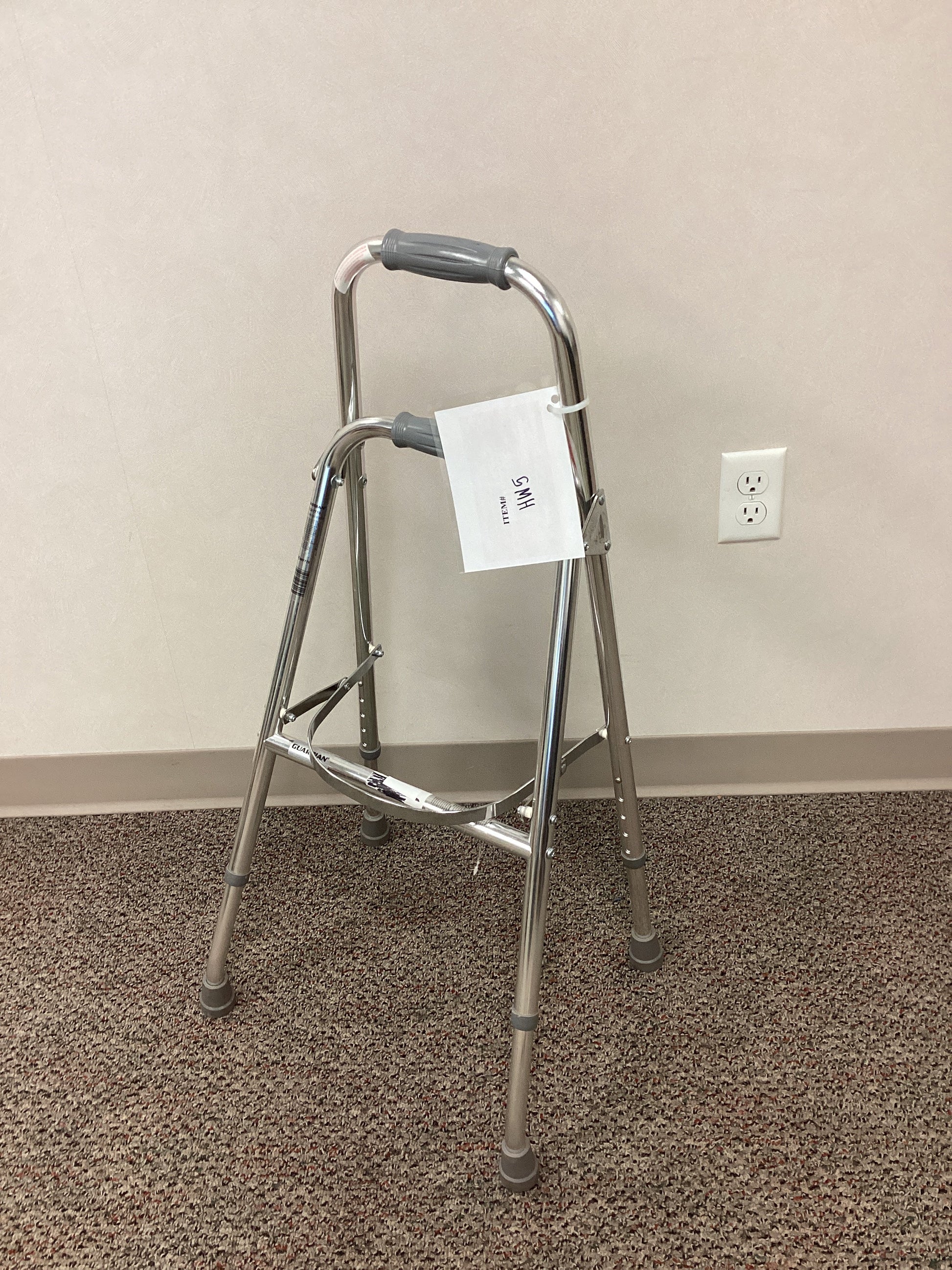 Guardian brand steel hemi walker designed for individuals with the use of only one hand or arm. This walker has 2 rubber handles at varying heights and non-skid rubber tips on all 4 legs. This walker is 17" wide at the base, height adjustable from 32" to 37" (top handle) and 26" to 30" (bottom handle), and foldable for ease of transport. Weight capacity is 250 lbs.