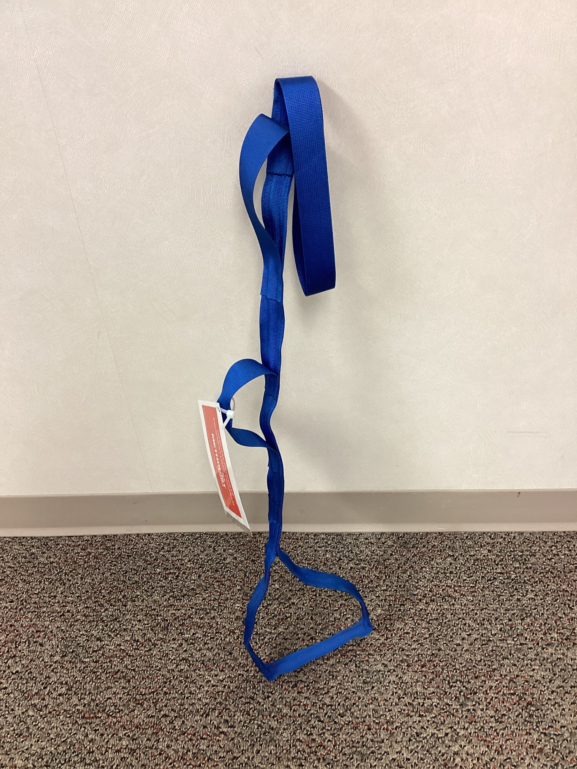 39" blue leg lifter with adjustable foothold loop. This leg lifter features a multi-loop handle design for a more secure and comfortable grip. Top handle is 9.5" long. Foothold loop is adjustable to fit a wide range of foot sizes. This leg lifter is able to be folded in any way for storage purposes.