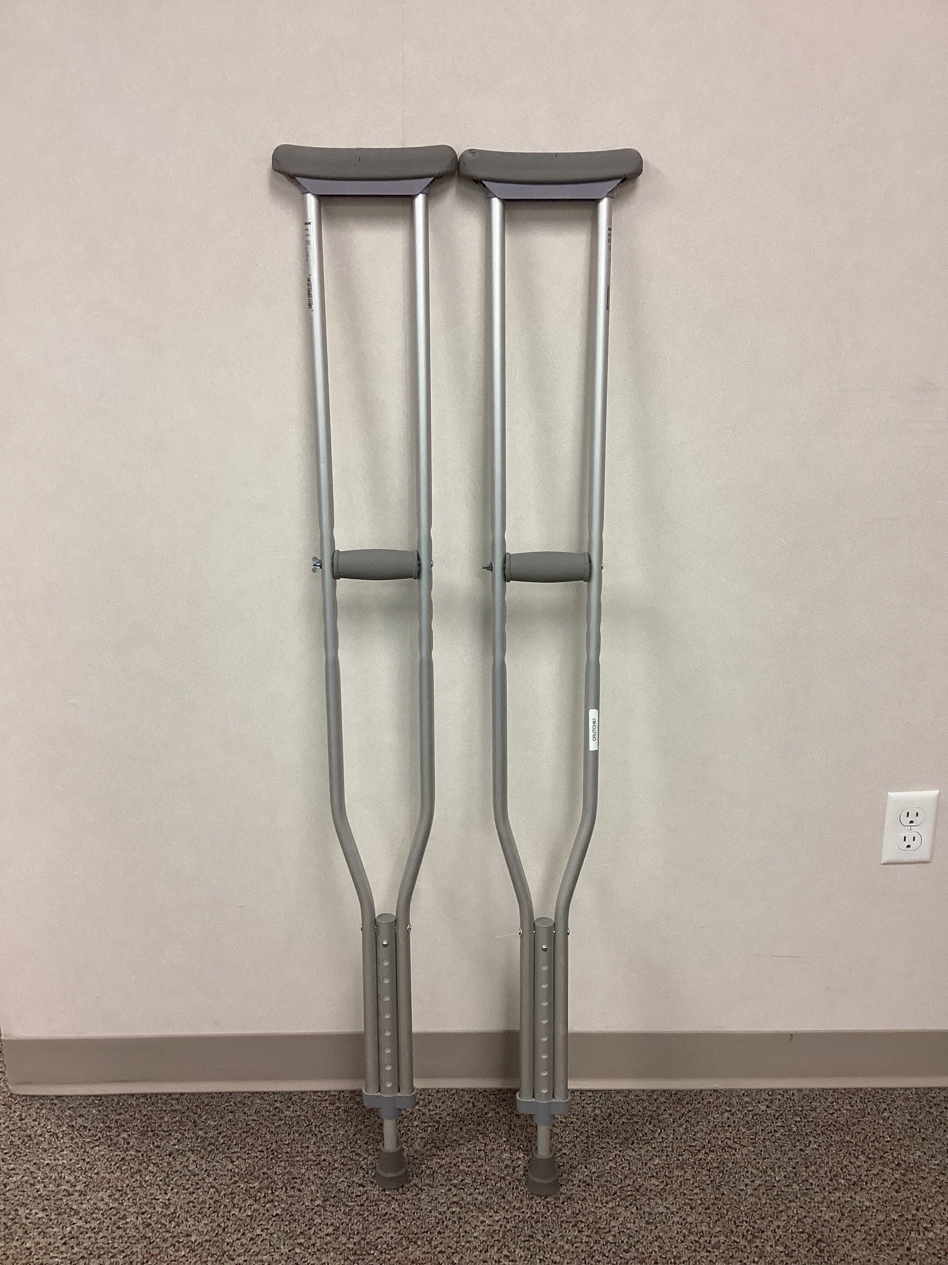 Guardian brand aluminum, tall crutches with slip-resistant feet and adjustable handles. These crutches are height adjustable and can accommodate individuals between 5'10" and 6'6". These crutches also feature padded armpit cushions for increased comfort. Weight capacity is 300 lbs.