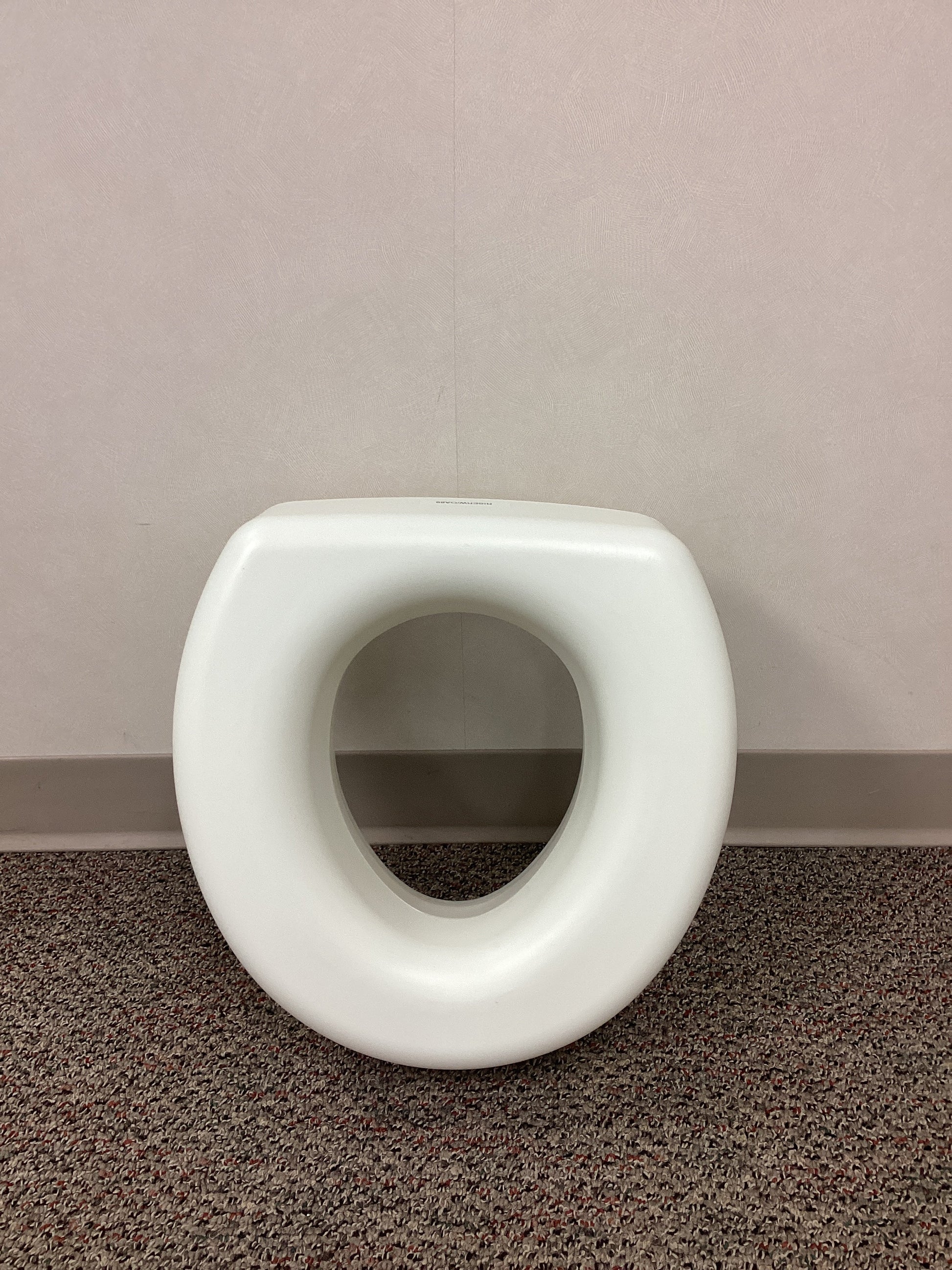 Toilet riser without arms. This riser has a 5" rise and is 15" wide and 15" long. This riser is not adjustable (the measurement of the opening that inserts into the toilet is 10.5"x11.5"). No weight capacity is listed.