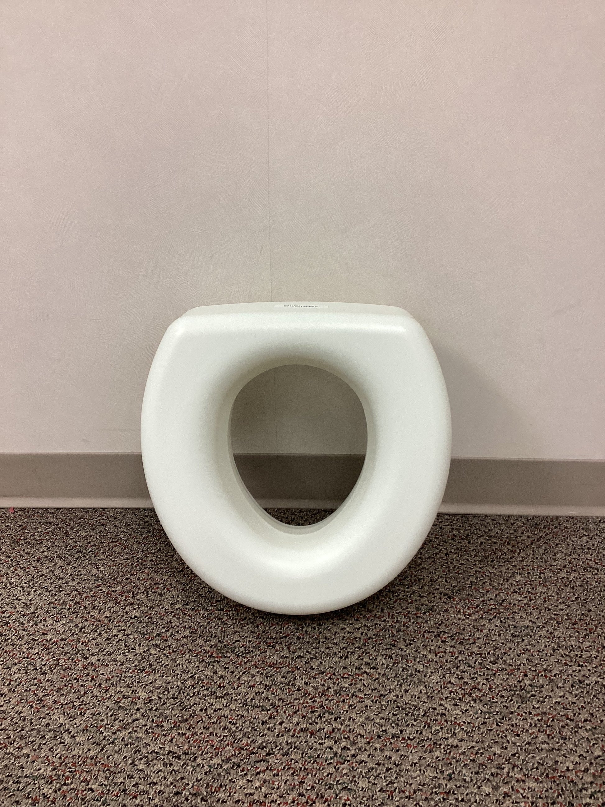 Toilet riser without arms. This riser has a 5" rise and is 15" wide and 15" long. This riser is not adjustable (the measurement of the opening that inserts into the toilet is 10" x 12"). No weight capacity is listed.